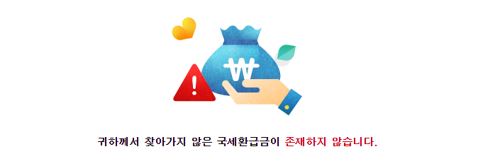 3. 미수령 환급금이 없다면 아래와 같은 문구가 나타납니다.