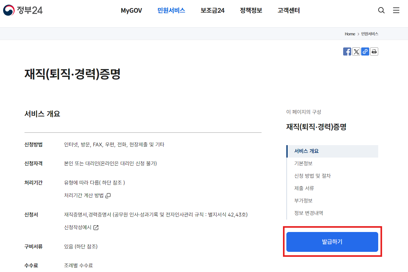 재직증명서 인터넷발급 (공공기관)