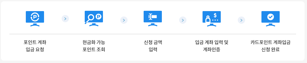 - 카드 포인트 계좌입금 서비스 : 신용카드사 등에 적립된 본인 명의의 현금화 가능 포인트를 본인이 원하는 계좌(본인 명의)로 일괄 입금 신청하는 서비스