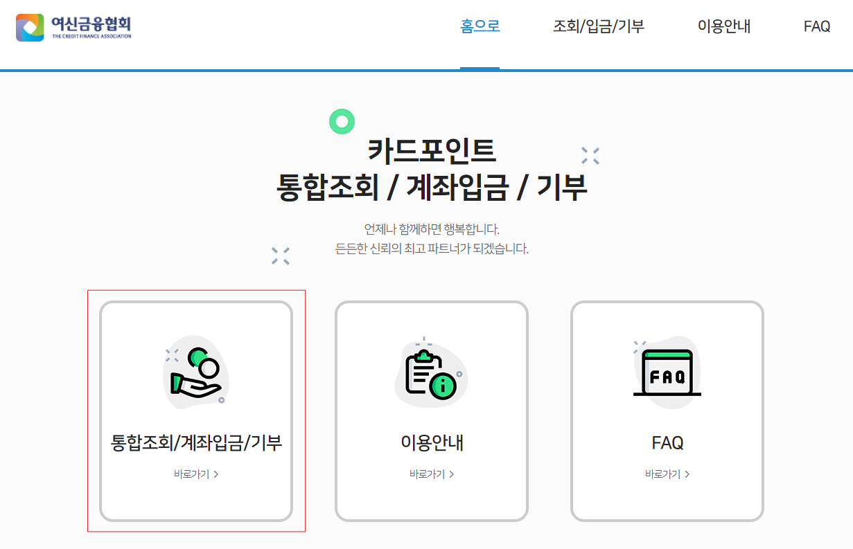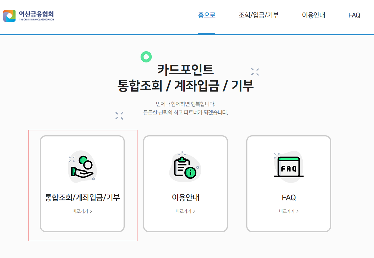 1. 아래 [카드포인트 통합조회가기] 클릭 - 통합조회/계좌입금/기부 클릭